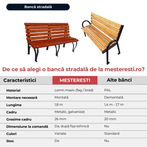 Un loc de relaxare este foarte important pentru orice spațiu public. Acesta facilitează interacțiunile dintre persoane de toate categoriile, fiind nelipsit dintr-o comunitate. Banca parc Andi, de la MESTERESTI, cu elemente din brad prinse pe suport metalic este ideală pentru utilizarea în orice spațiu public, dar și în spațiile private.