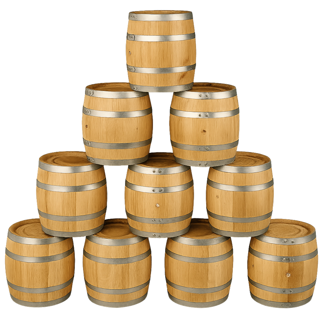 * În funcție de lotul de marfă, butoaiele pot avea cercuri argintii sau negre. Contra cost butoaiele se pot personaliza în funcție de Nume, Simbol, Desen.