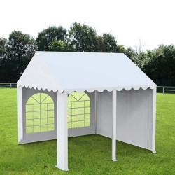 Cortul profesional evenimente impermeabil Ignifug 4×4 m din PVC alb de la MESTERESTI este ușor de montat, cu structură din oțel zincat și prelată robustă din PVC de 550 grame / metru pătrat. Acest model reprezintă o alegere avantajoasă, cu cel mai bun raport calitate-preț. Structura din oțel zincat îl face rezistent la șocuri sau rafale puternice de vânt, asigurând o utilizare fără evenimente nedorite. Modelul prezentat se bucură de protecție anticorozivă iar pereții laterali împreună cu prelata oferă protecție anti-soare de 80+, precum și contra razelor UV, dar și un grad de impermeabilitate de 100%.