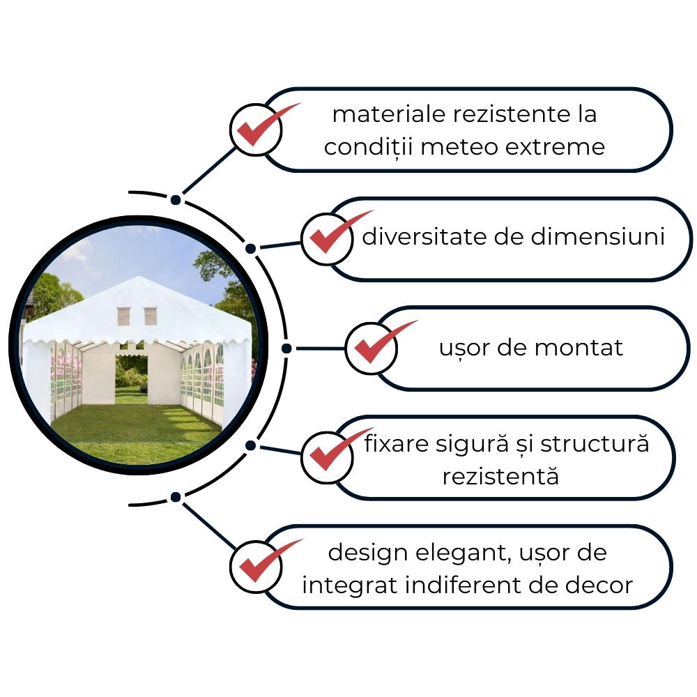 Cortul poate fi montat cu ușurință de tine. Vezi detalii despre montaj aici.