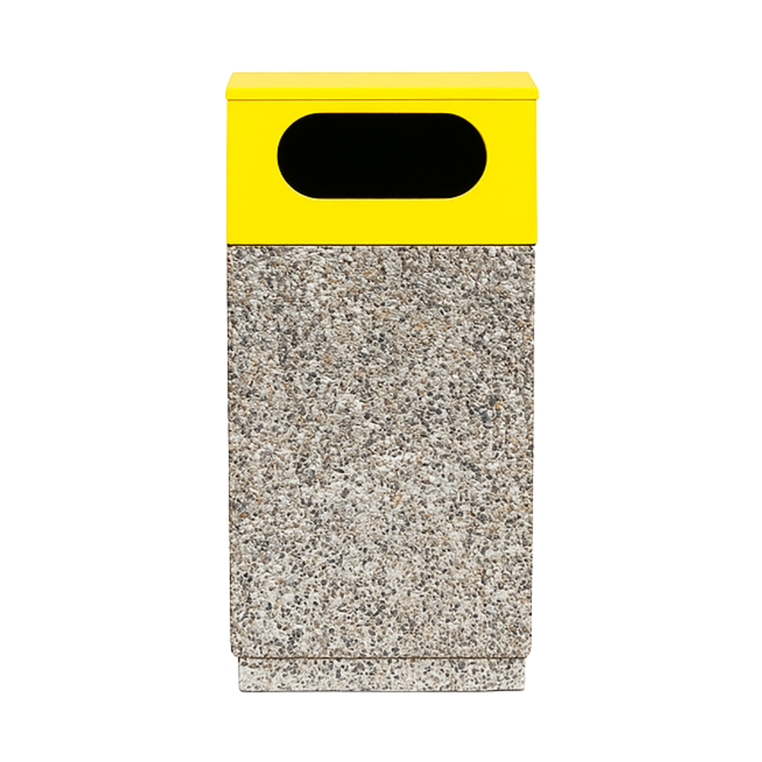 Coșul de gunoi stradal Lapis este realizat din beton de înaltă rezistență, cu un finisaj elegant ce imită piatra și este prevăzut cu compartimente pentru colectare selectivă, facilitând reciclarea și menținerea curățeniei în spațiile publice. Materialul durabil asigură rezistență la intemperii, uzură și vandalism, având o durată lungă de viață.