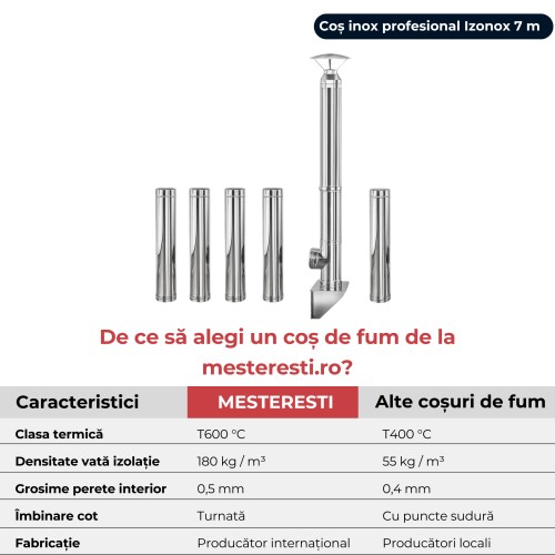 Durată lungă de viață: Investiția inițială este justificată de durata lungă de viață a coșului de fum, reducând necesitatea de înlocuiri frecvente.