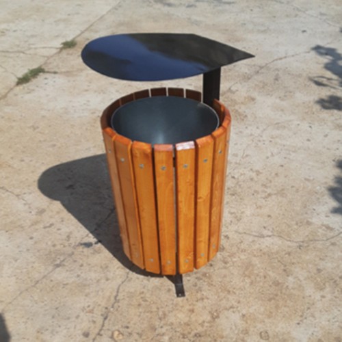 Coșul stradal cu capac rabatabil Rabil, de la MESTERESTI, dispune de elementele create din lemn de brad finisat, prinse pe suport metalic realizat din țeavă. Elementele metalice ale coșului sunt vopsite în câmp electrostatic pentru a asigura rezistență și protecție. Elementele de lemn sunt tratate, lăcuite și vopsite, pentru o mai bună rezistență atât la apă, cât și la raze UV. Atât elementele metalice, cât și cele din lemn pot fi vopsite în orice culoare din paletul RAL.