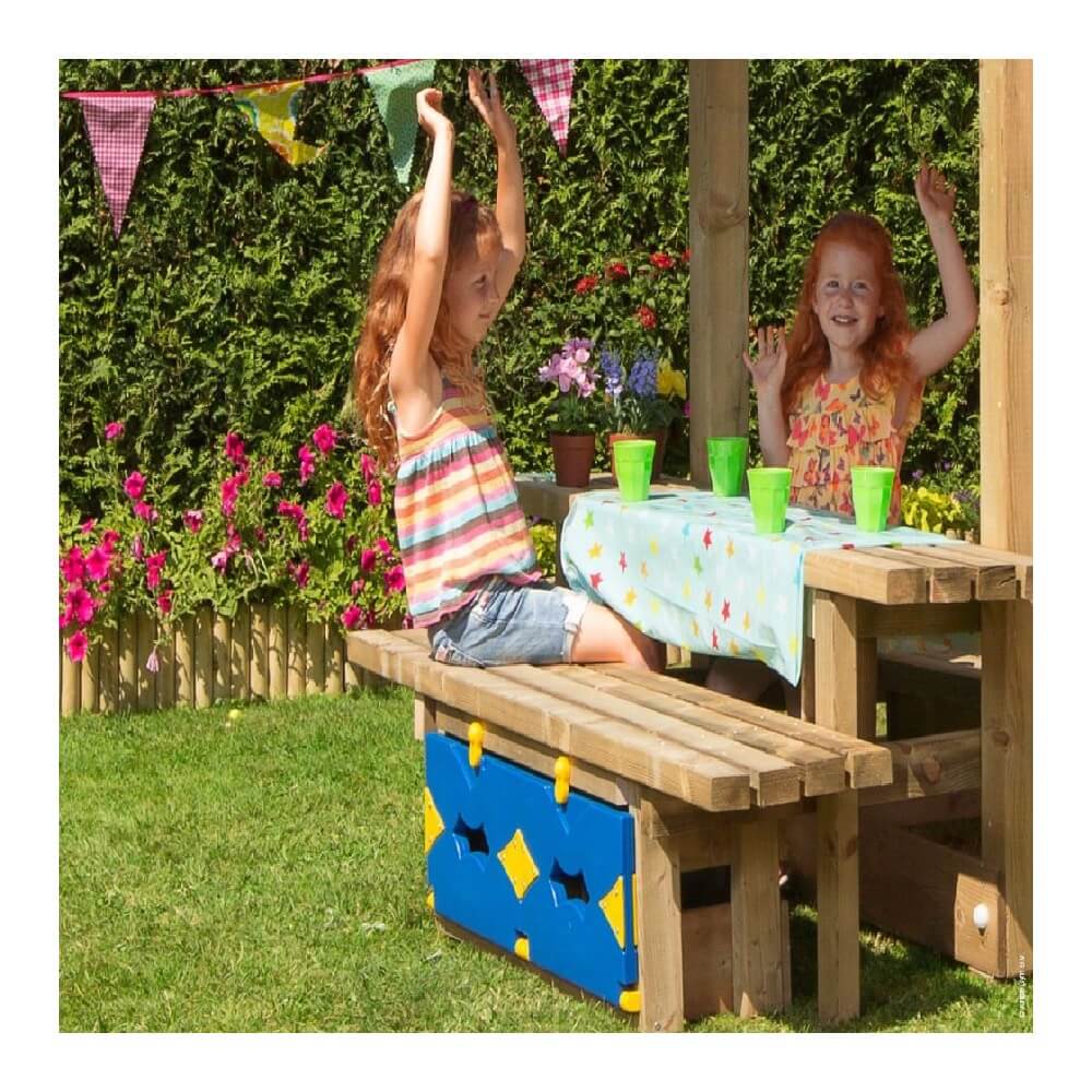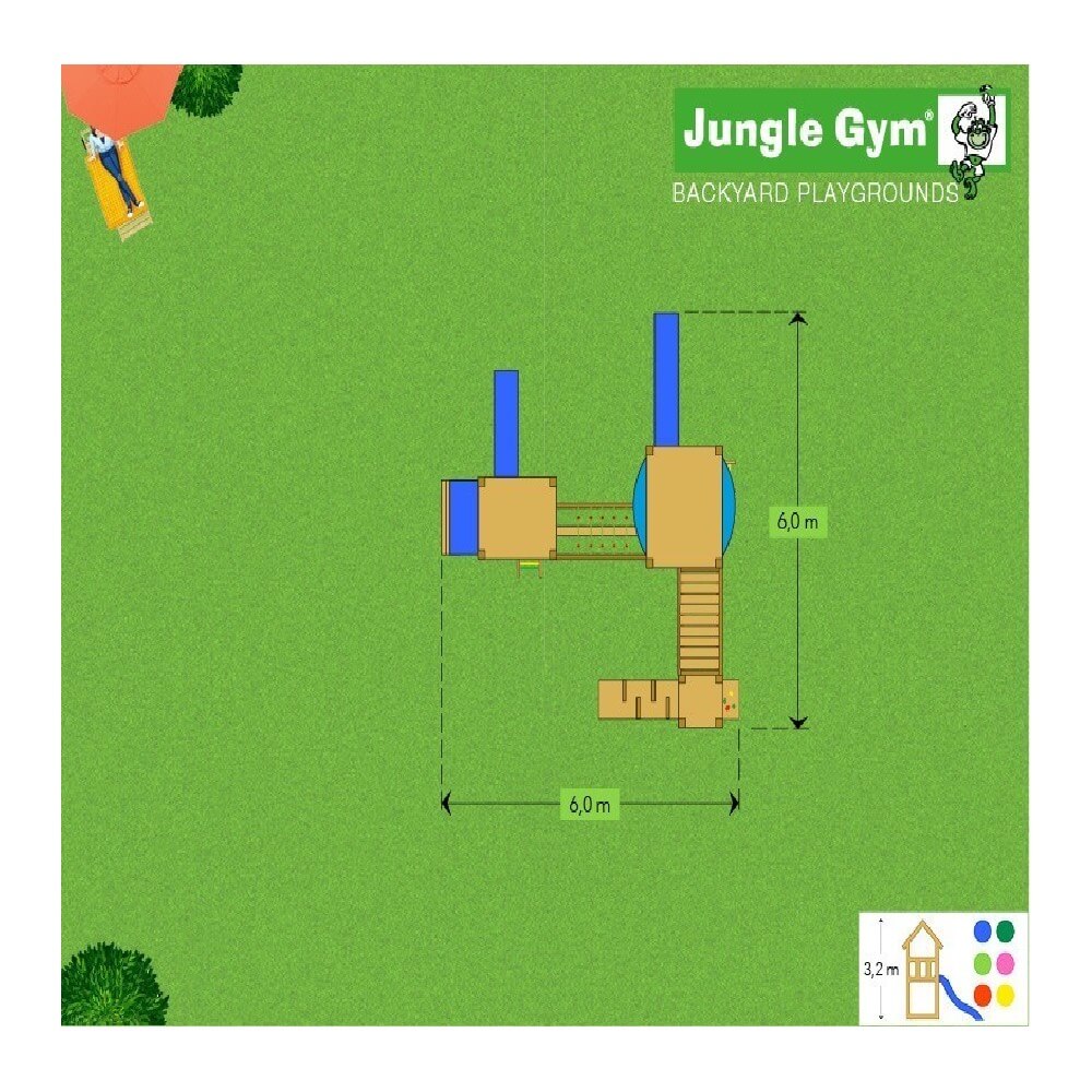Pachetul acestui produs conține: Turn Hut cu tobogan 2,3 m lungime, Turn Barn cu tobogan 2,9 m lungime, 1 buc. Modul Playhouse Mare, 1 buc. Modul Mini Picnic 120, 1 buc. Modul Net Link, 1 buc. Modul Bridge.