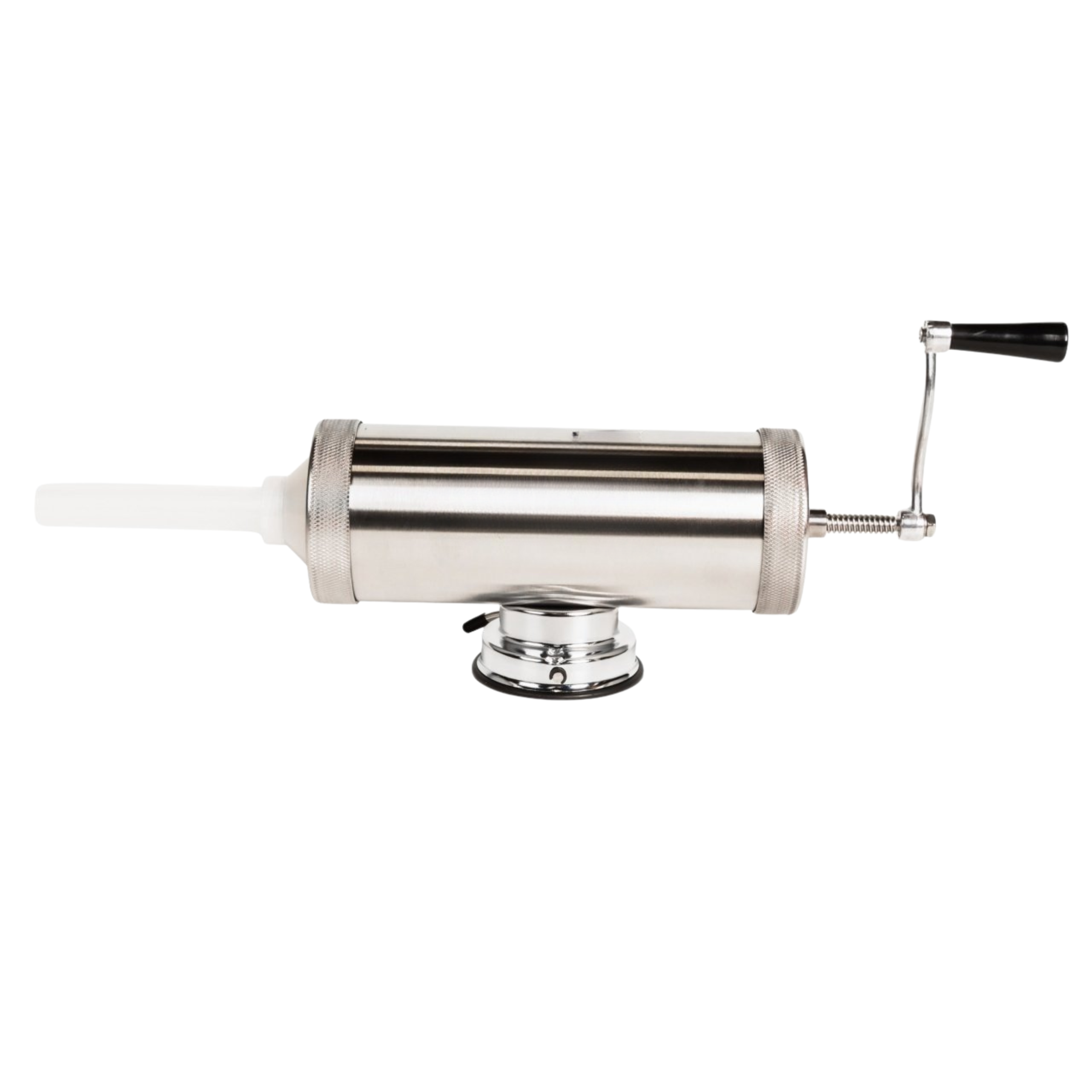 Dacă vrei să pregătești cârnații într-un timp cât mai scurt, o mașină de umplut cârnați este exact ceea ce îți trebuie. Mașina de umplut cârnați orizontală de 3 kg, de la Meșterești, este un produs practic, ușor de utilizat și de întreținut. Aceasta este realizată din aluminiu inoxidabil și vine pe un suport cu ventuză și cu o clemă de prindere, pentru o stabilitate ridicată.