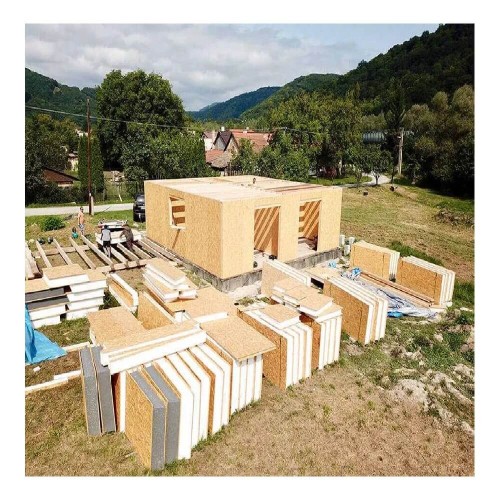MESTERESTI îți recomandă Panou SIP Anza fibrociment, polistiren și OSB, grosime 22 cm, 250x125 cm. Acest produs modern este perfect pentru construirea unei casei într-un mod rapid și eficient din punct de vedere termic. Panourile au o construcție de tip sandviș, compuse din două plăci și un material izolant pe mijloc astfel cu ajutorul lor clădirea devine izolată termic. Mai mult, caracteristicile bune al acestui produs oferă un randament înalt iar costurile de construcție sunt mai mici comparativ cu construcția clasică a casei.